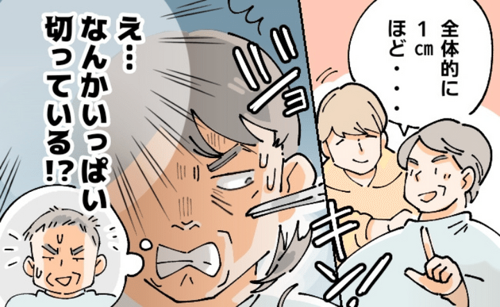 不安になって確認すると、美容師さんはこちらの意図する「1cmだけカット」を、どうやら「1cmに仕上げる」と勘違いしたようでした。