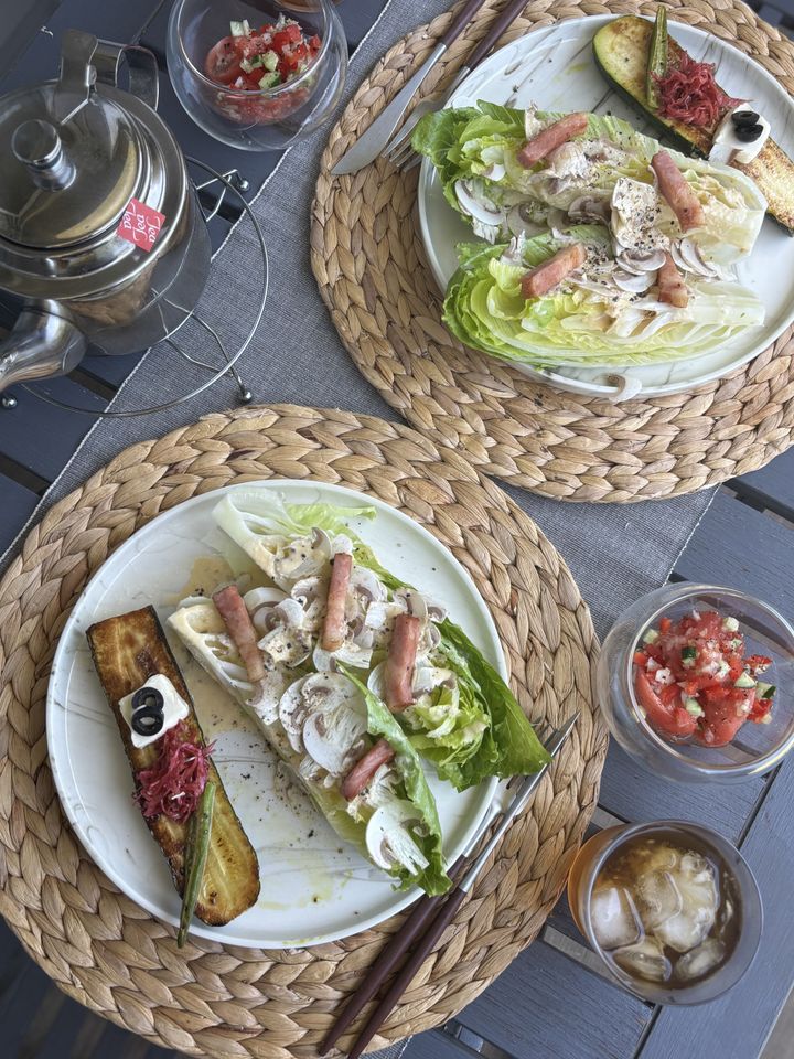 太陽の下で五感をのびのび解き放ちながら味わう朝食って、なんてことない日を特別なものに変えてくれる力を持っている気がします。忙しい日々だからこそ、主人にも旬の野菜をたっぷりととってほしい——そんな思いも込めて。