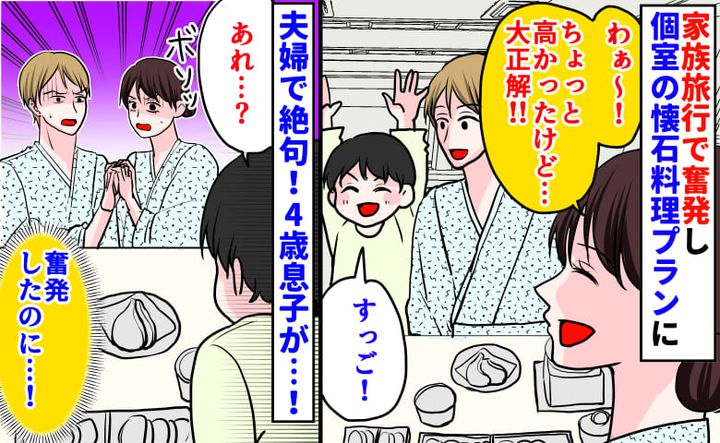 3. 「奮発したのに…!」家族旅行で個室の懐石料理プランに。料理が運ばれた瞬間、夫婦で絶句!4歳息子が…!