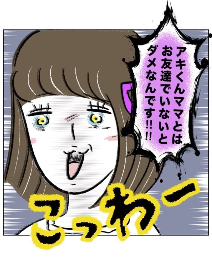 「アキくんママとはお友達でいないとダメなんです!!」そう必死に叫ぶゆかちゃんママを前にして、苛立ちや不快を通り越して怖くなったまるさんです。