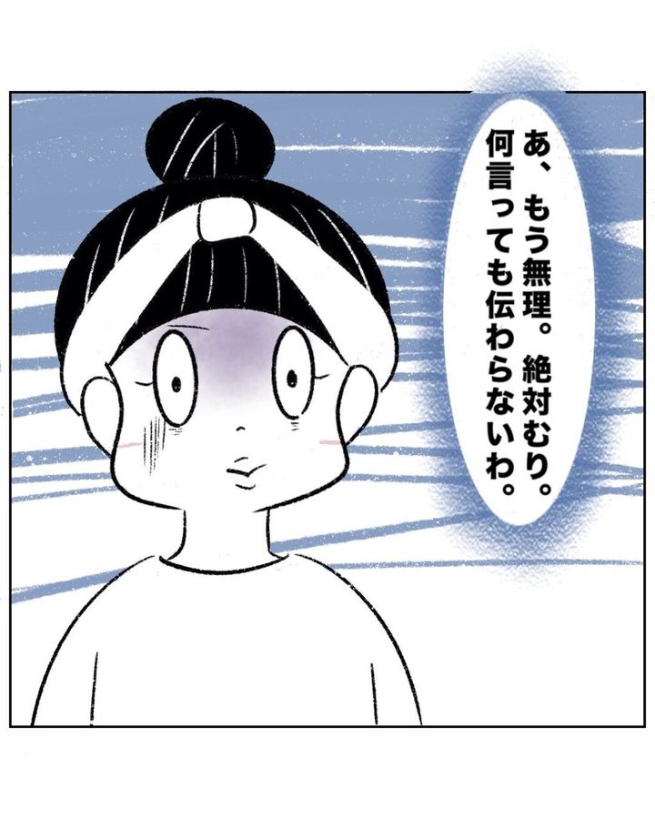 さりげなく避けてもダメ、ハッキリ言ってもまるで伝わらないゆかちゃんママ。もともと無理だと思っていたまるさんは、(もう無理。絶対むり。何言っても伝わらないわ。)と確信しました。