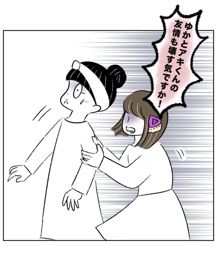 するとまるさんを追いかけて来て腕をガシッとつかんだゆかちゃんママは「ゆかとアキくんの友情も壊す気ですか!」と言ったのです。