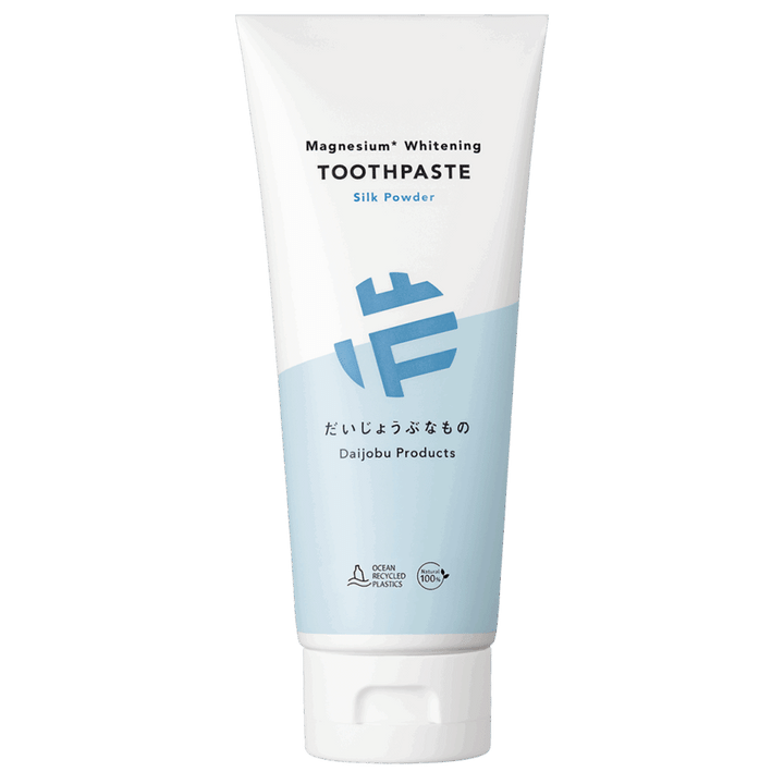 エリシルクが歯の汚れを吸着し、自然な白さへと導く。だいじょうぶなもの マグネシウム ホワイトニングトゥースペーストシルクパウダー 100g ¥1,760(たかくら新産業)