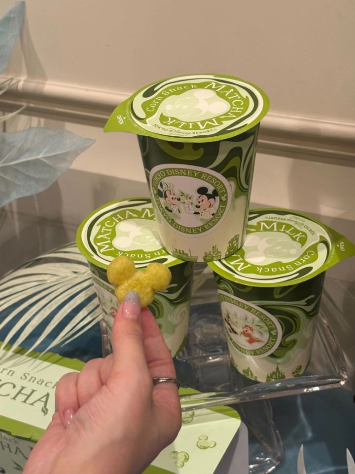 ミッキーの形をした抹茶味のスナック。