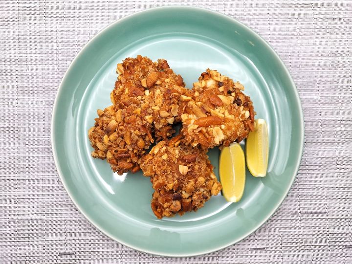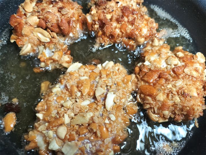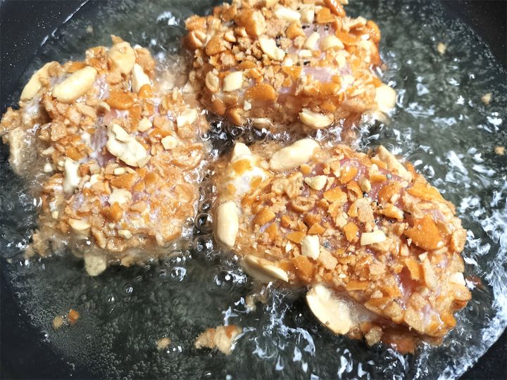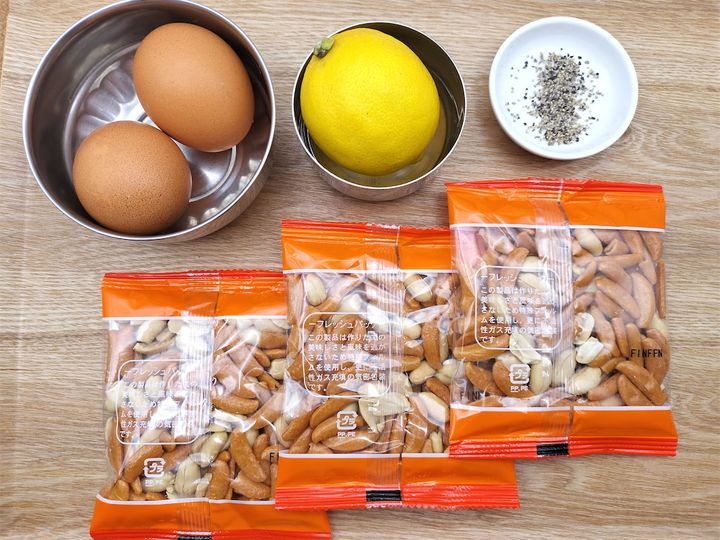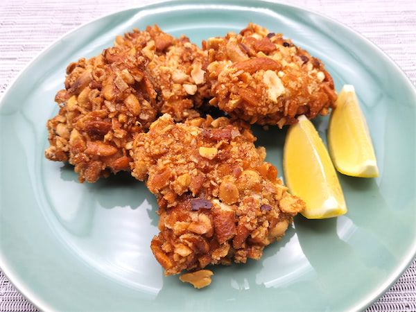 Georgeさんは全卵でもおいしいと言っていました。柿の種を衣に使うレシピは他のシェフも紹介していますが、ピーナッツも一緒に衣にしたレシピは初めてみました。これはこれで、アリだと思います。