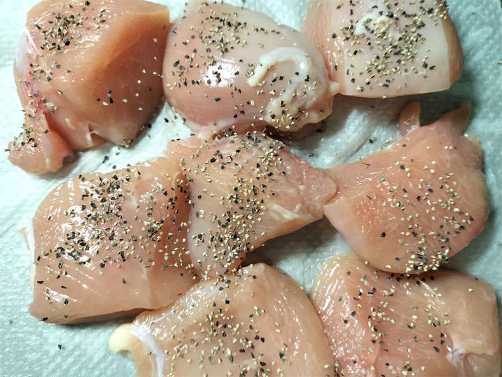 4. お好みで、鶏肉に黒こしょうを振ります。