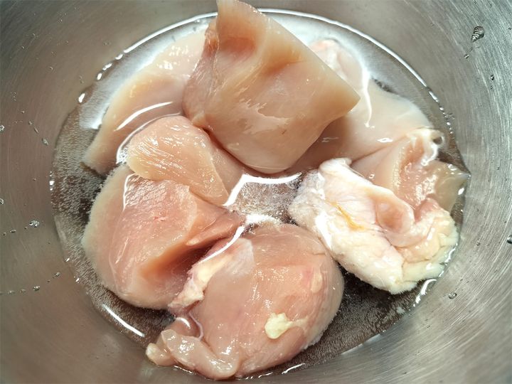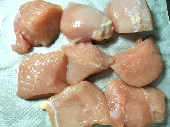 鶏むね肉:脂肪や血管をはずしてから、大きめの一口大に切っておきます。