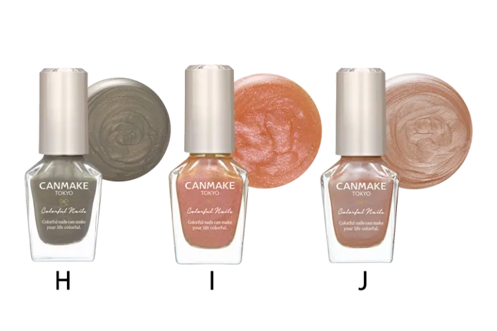 〈H〉キャンメイク カラフルネイルズ N119、〈I〉同 N120、〈J〉同 N122 各396円/井田ラボラトリーズ
