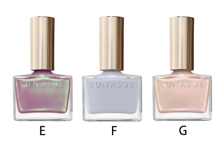 〈E〉ルナソル ネイルポリッシュ EX57、〈F〉同 EX58、〈G〉同 EX56 各2,200円/カネボウ化粧品(8/8限定発売)