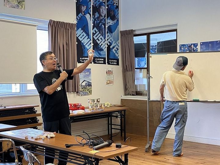 草刈りと勉強会の後は、毎年ビンゴ大会やクイズ大会など地域住民による楽しい出しものがある。ビンゴは全員が当たるまで続く、平和な大会。寺田さんは「ビンゴ歴20年」だそう
