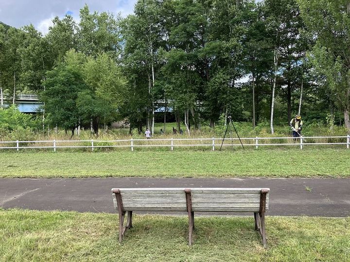 石山地区の豊平川河川敷。ランニングや散歩をする人も多い。左手のガードレールの向こう側に緑が生い茂り、奥に川が流れている
