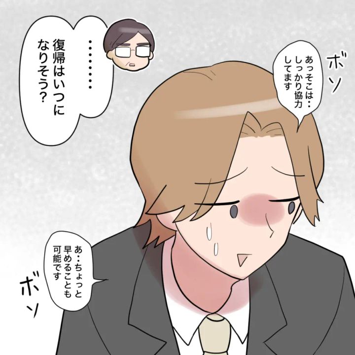 3. 復帰面談でボソボソ「復帰はいつになりそう?」離婚の話をした手前早めるとしか言えず。お金回収夫|ママ広場マンガ