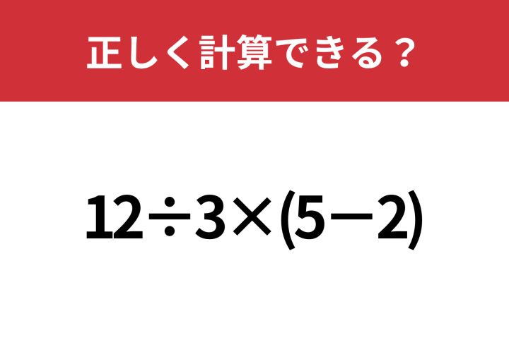 3. 解き方を忘れている人が多いかも?「12÷3×(5−2)」正しく計算できる?