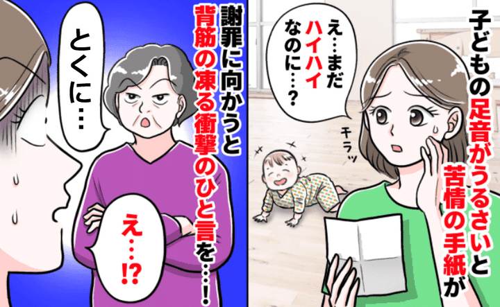 子どもの足音がうるさい!苦情の手紙…うちの子まだ歩けないのに?謝罪へ行くと住人の言葉にゾッとした