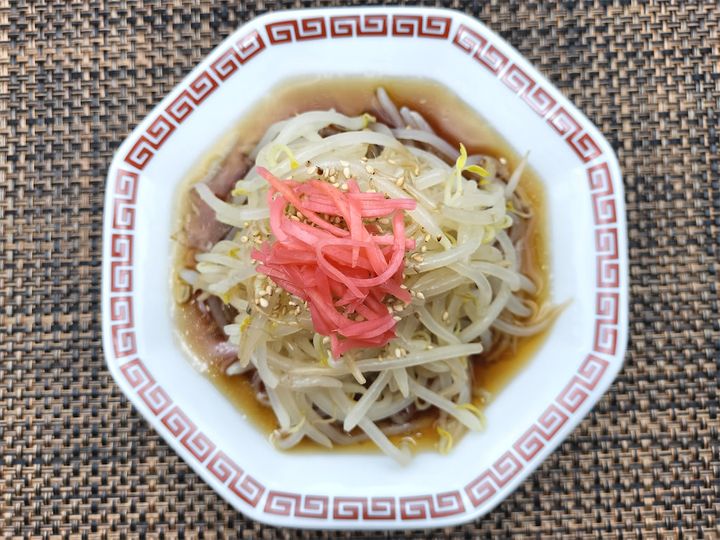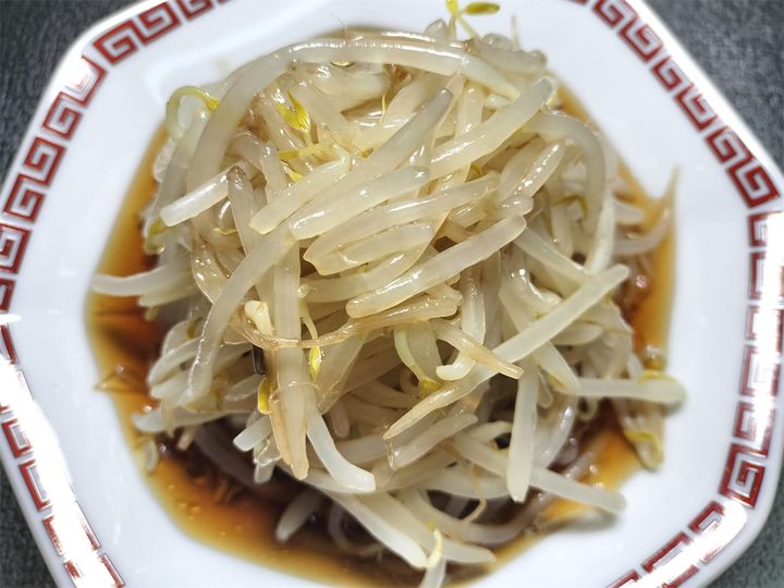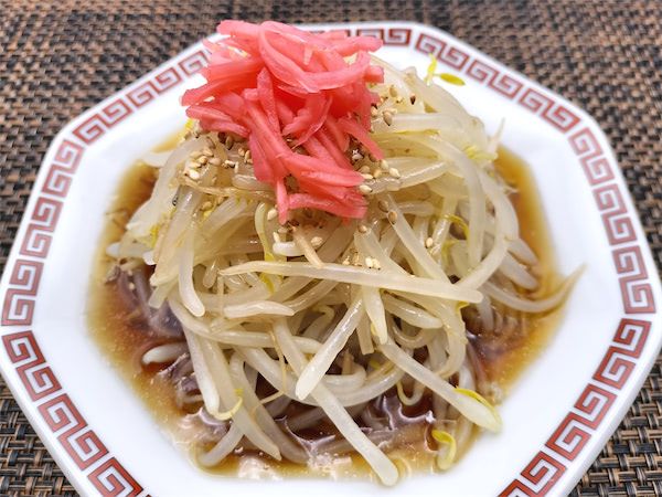 自分でそれらしく盛り付けたにもかかわらず、ちらっと見せられただけなら冷やし中華と勘違いするかもしれないな、と思う見た目です。さっそく箸でつまんで口へ運んでみると、ちゃんとシャキシャキしたもやしの食感にタレがしっかり絡んでいて、もやしだけだとは思えないほどの旨味のあるおいしさでした。