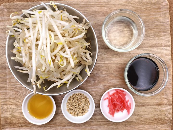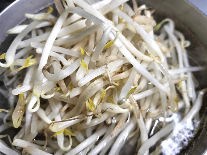 1. 熱湯(分量外)にもやしを入れて20秒茹でます。