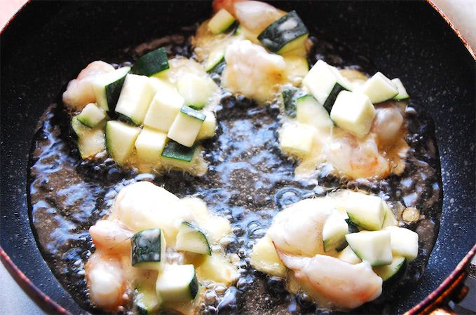 5. 3のエビ&ズッキーニと、4を混ぜ合わせます。