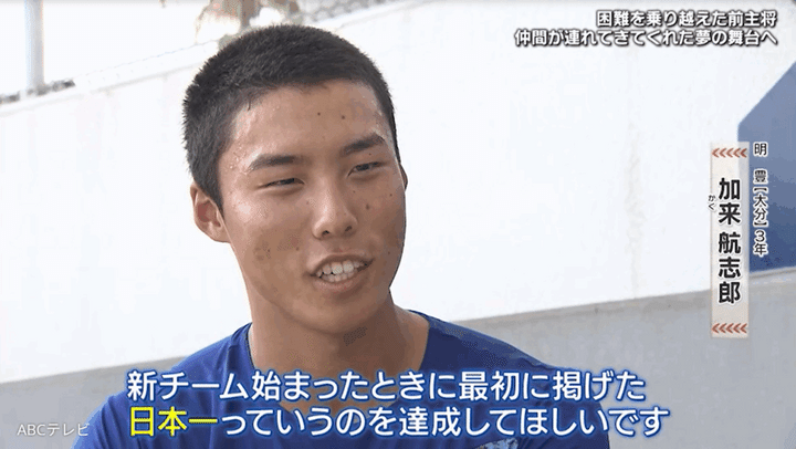 苦しむ加来選手の励みになったのは、仲間たちのメッセージだ。加来選手は仲間たちの支えもあって、大会直前にチームに復帰。甲子園に連れてきてくれた仲間たちに、「新チーム始まったときに最初に掲げた、日本一っていうのを達成してほしい」という思いを託し、アルプススタンドに立った。
