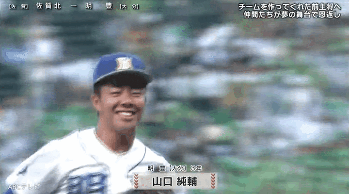 守備では、明豊が3点をリードする6回裏に、3年生エース・寺本悠真投手が2アウト2・3塁のピンチに。しかし、同学年のファースト・山口純輔選手がスーパープレイでこの回を無得点で終わらせ、佐賀北に“がばい旋風”を起こさせなかった。