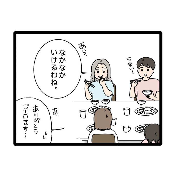 みんなも食べだし、「うまい!」とひできが言うと、「あら、なかなかいけるわね」と義母に褒められ、「あ、ありがとうございます・・」と動揺しながら言うと、