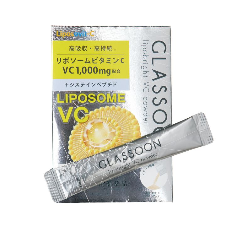 付録でも話題の新ブランド。化粧品事業のサナと「南天のど飴」を展開するヘルスケア事業の共同プロジェクト製品。ビタミンCを1本に1000mg配合。グラスーン リポブライト VC パウダー〈健康補助食品〉 3g×14本 ¥3,240