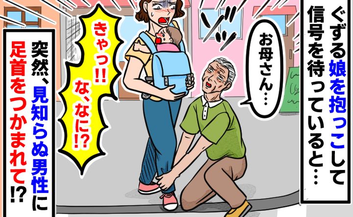 「え…」娘を抱いて信号を待っていた私。見知らぬ人が私の前でしゃがみ、足首をつかまれゾッ…理由とは?