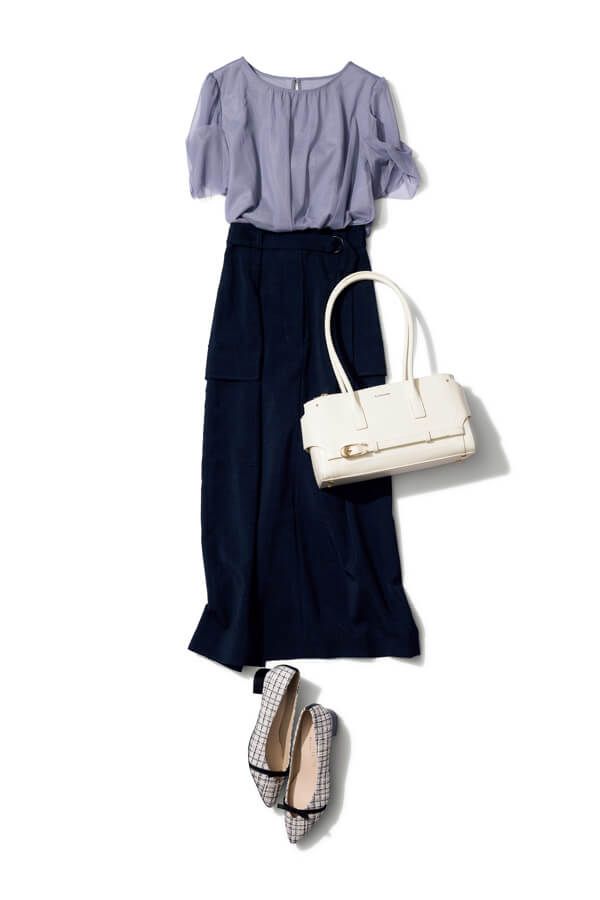 スカート¥8,140/ナノ・ユニバース(ナノ・ユニ バース カスタマーサービス) ブラウス¥3,993/ロペピクニック(ジュンカスタマーセンター) バッグ¥15,400/& シュエット(&シュエットギャラリー 池袋サンシャインシティアルパ店) パンプス¥11,000/アルテミス by ダイアナ(アルテミス by ダイアナ アーバンドック ららぽーと豊洲店)