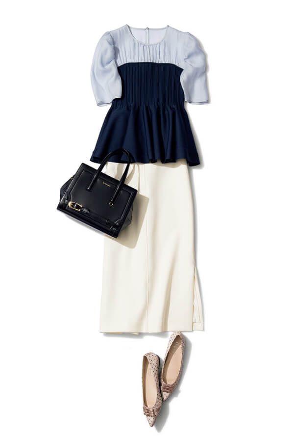 ペンシルシルエットならペプラムとも相性よし。