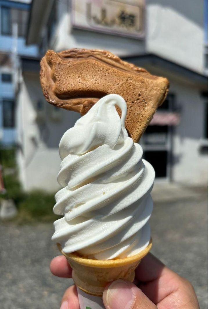 これをスプーン代わりにしてもOK、ソフトクリームと一緒に食べてもOK、まろやかな甘味あるソフトクリームと相性ばっちりです!