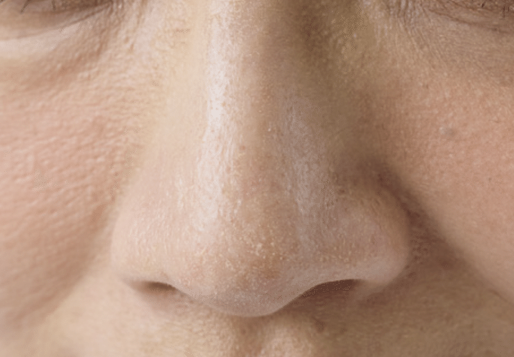 皮脂腺の多いTゾーンに多い。乾燥肌でも、皮脂を出してうるおい不足から肌を守ろうとする自衛機能が働くため、油断禁物。