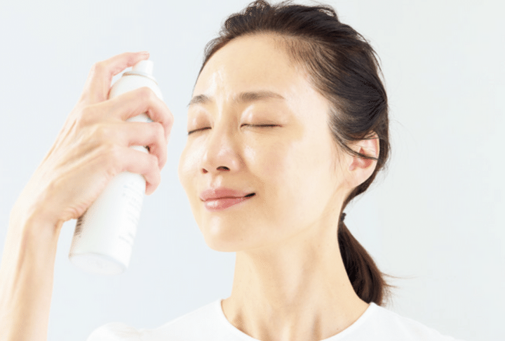1. ミスト化粧水をたっぷりと吹きかける