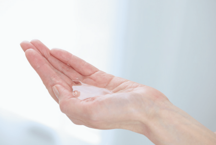 手のひらを内側に軽く曲げると中央にできるくぼみが池になるくらい、化粧水を取る。