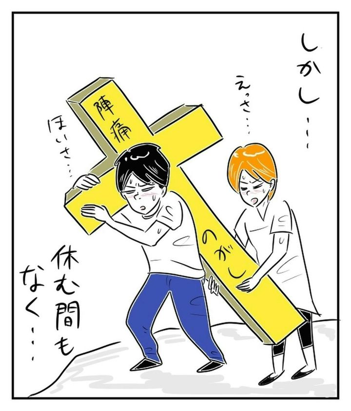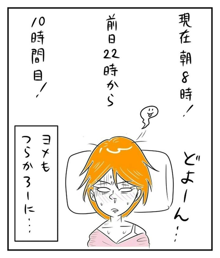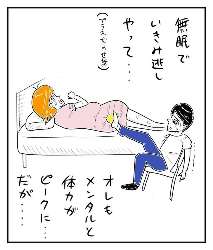 陣痛に耐える妻はもちろんのこと、不眠不休でサポートしていたmakoshさんも限界の様子…。意識を保つのもやっとです。