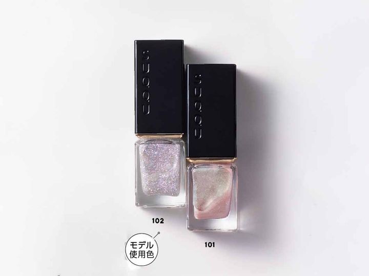 さまざまな色とパールを重ね、オーロラやホログラムを思わせる複雑な輝きを演出。
