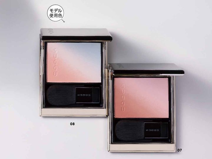 やわらかな血色チークと、透け感をプラスするミルキーカラーのハイライターをセット。