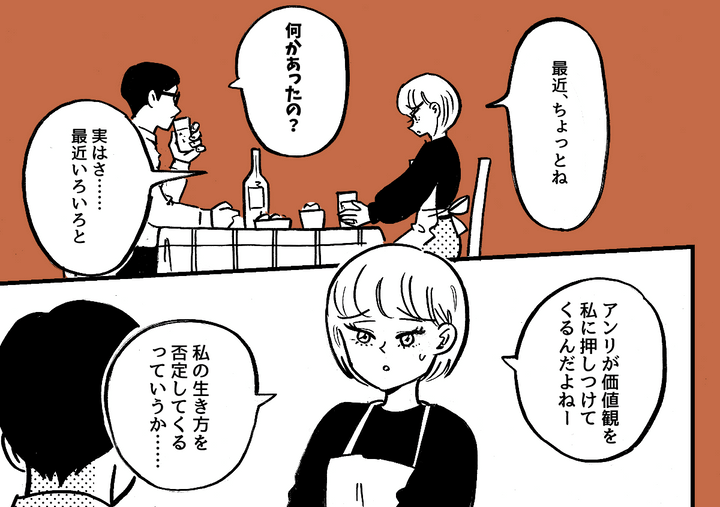 アンリは学生時代から気の合う友だちだったのですが、少し気になることがあるのです。昔は仲良く遊んでいました。しかし、近頃では会うたびにアンリは自分の価値観を私に押しつけてくるのです。私は生き方を否定されていると感じるのです。