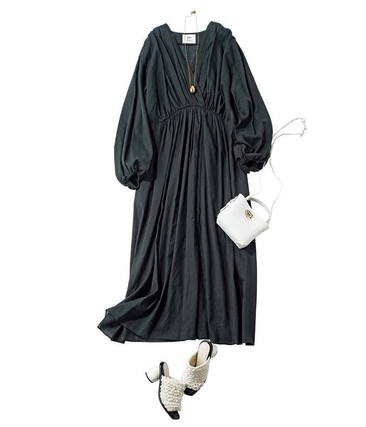 心待ちにしていた女子夜飲み、ノースリ女子友に負けずに映えたい! そんな時はワンピースで華やぎたいを。肌見せワンピも「ほぼクロ×長袖」なら女っぽさが際立ちます。