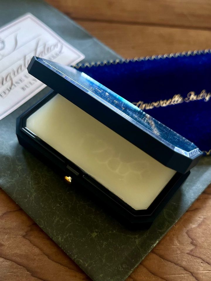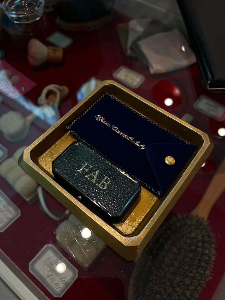 この絶妙な大きさのケースの色と表面の素材、そしてそこにラグジュアリー感のあるゴールドの刻印の文字を好きに選べる。さらにベロアの布ケースの色も好きなものをチョイスできる。しかもお店に行けばこのすべてをその場でそこまで待たずに完成させてくれる。普通はオーダーしてしばらくかかったりするが、その日にカスタマイズのギフトを買えるのは地味だが実はとてもありがたいポイント。