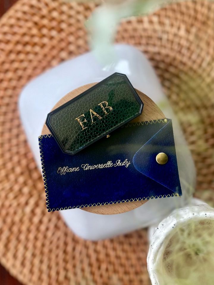 シンプルに名前を入れるのも良いし、名前入りのバームを持ち歩くタイプではないかなという相手にはメッセージやその人を表す言葉を。今回はFabulousの略語であるFABをファビュラスなあの人へ。