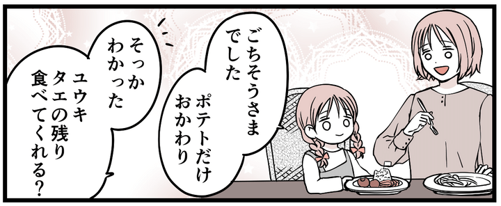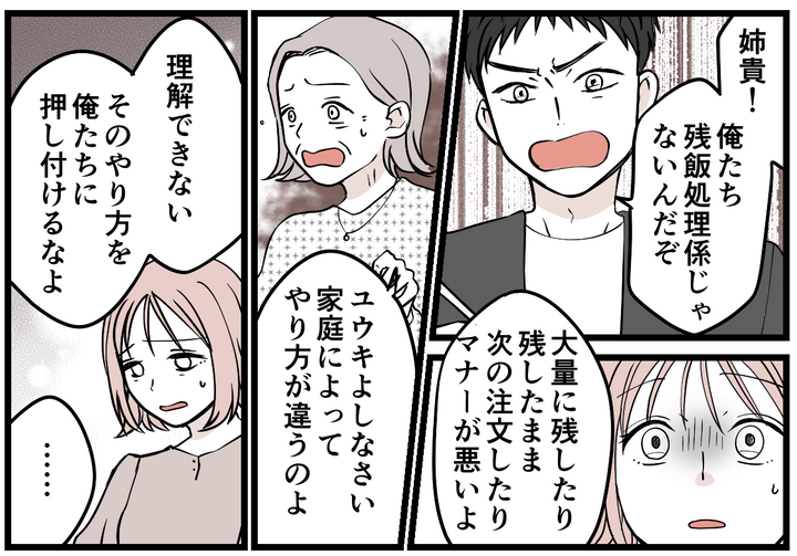 私の頭のなかには、「少しでも食べてくれた」「ポテトもさらに食べるんだ」という考えがありました。それでいつものように弟のユウキに、タエの残したものを食べてくれるように頼んだのです。そのことが、私の家庭と弟家庭がギクシャクする原因になるとは思ってもみませんでした。