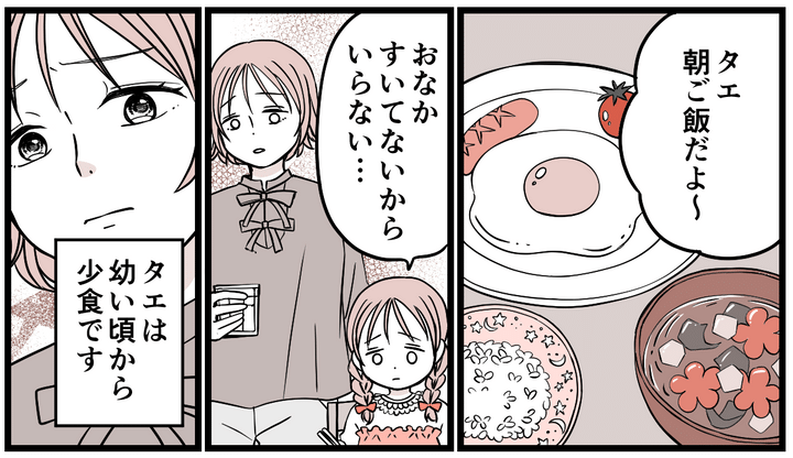 何年もすごく悩みました。バランスがいい食事を用意してもちょこっとしか食べない。しかも好きなものだけ。タエのご飯の残りを食べていると、とてもむなしい気持ちになります。「旦那がいればこういったことも手伝ってもらえたのかも」などと考えてしまい、どんどん気持ちが落ち込みました。