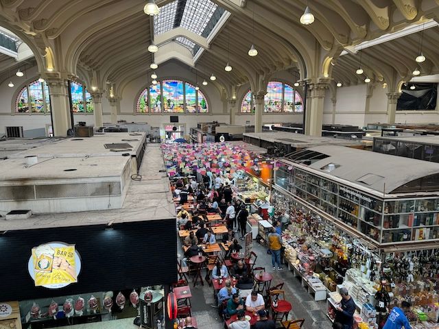 市場のシンボルとして多くの観光客の撮影スポットとなっています。市場は2階建てになっており、1階は生鮮食品やカウンター形式で楽しむレストラン、2階は大きめのテーブルがある座れるレストラン。ステンドグラスを撮影する際は2階に上って撮影するのがおすすめです。