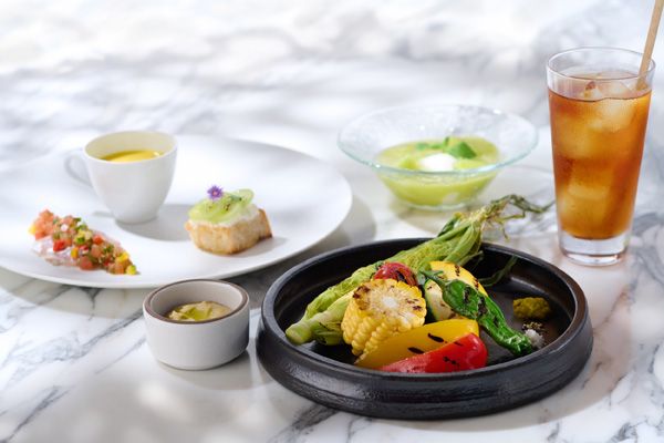 「DEK DINING」ではランチコースとディナーコースが用意されています。平日限定のランチコースはメインディッシュが選べる2種のプリフィックス形式。Aランチコースは前菜3種の盛り合わせや、国産野菜を使用した「季節野菜のグリル」または「本日のパスタ」から選べるメインディッシュ、デザートの全3品です。