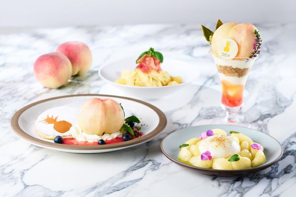 「DEK KITCHEN」では7月2日から桃メニューがスタートしました。「国産桃とブラータチーズ」をはじめ、パフェやパンケーキ、冷製パスタ、かき氷など、旬の桃をしっかり味わえるラインアップ。「国産桃のパフェ」「国産桃のパンケーキ」なども人気メニューです。青果の魅力に五感で浸るひとときを体験できます。
