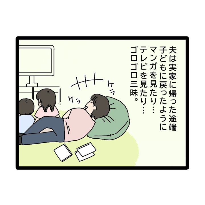 子どもに戻った夫はマンガを見たりテレビを見たりとゴロゴロ三昧