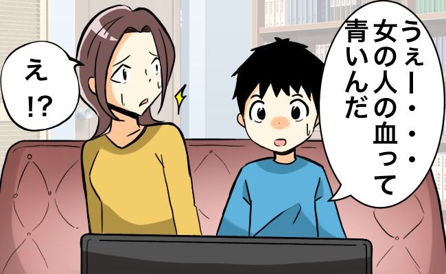 そんなある日、10歳の息子がテレビを見ながら「うえー……女の人の血って青いんだ」と口にしました。何を言っているんだろう?とテレビを見ると、息子が見ていたのは生理用ナプキンのCM。吸収量がわかるようにと青の液体を吸収したナプキンが映っていました。