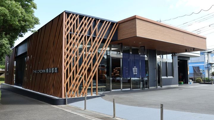 今回、私が訪れた横浜都築「THE CROWN」は福岡と並んで初「THE CROWN」となった店舗だ。木をふんだんに使った和モダンな外観、入り口にかかった王冠マークののれんなど、まるで老舗旅館にでも訪れたような佇まいである。