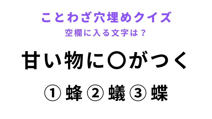 「甘い物に〇がつく」の空欄に文字を入れると、あることわざが完成します。