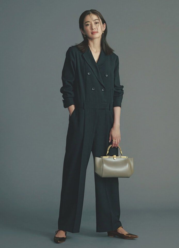 テーラーカラージャンプスーツ¥29,700(ザ ポーズ/ウィム ガゼット 玉川髙島屋S・C店)バッグ¥193,600(ザンケッティ/八木通商)パンプス¥16,500(ダイアナ/ダイアナ 銀座本店)ピアス¥3,850リング¥3,{hlb}080(ともにヘンカ/ロードス)