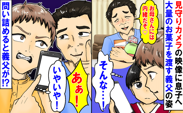 義父「内緒だぞ〜♡」見守りカメラの映像に息子へ大量のお菓子を渡す姿を確認!問い詰めた結果、義父が…!